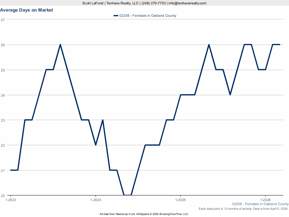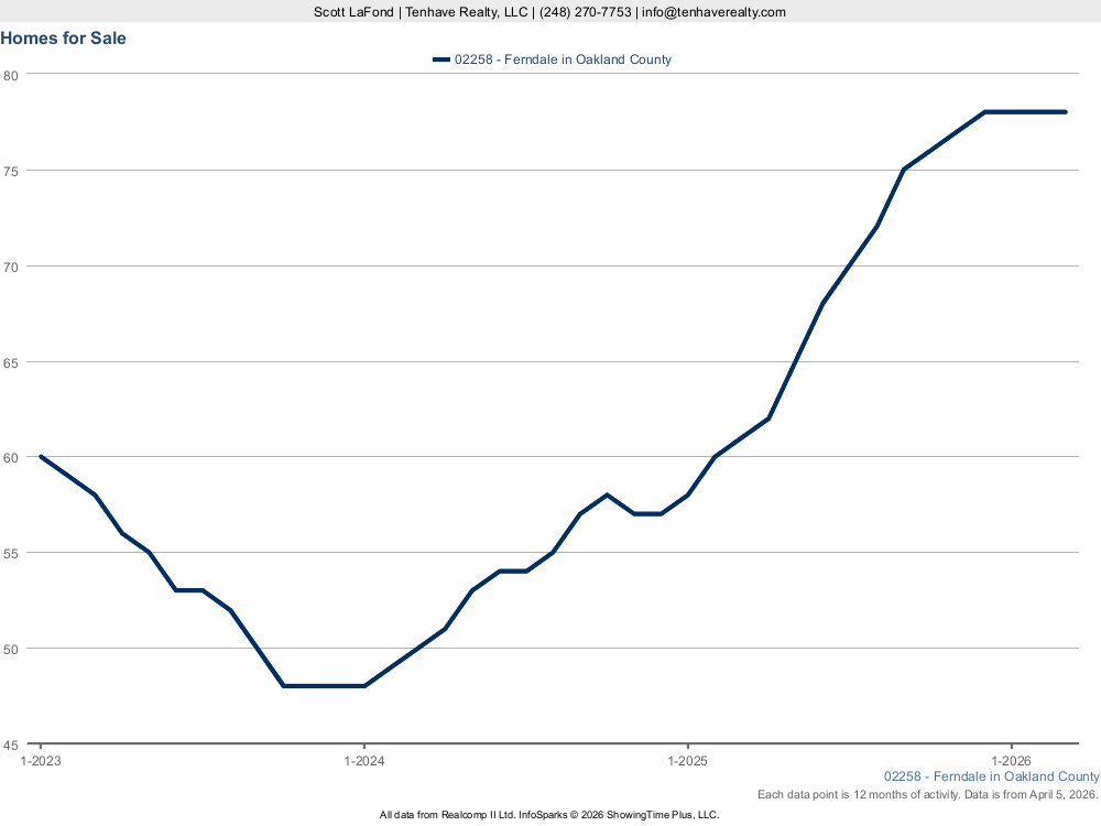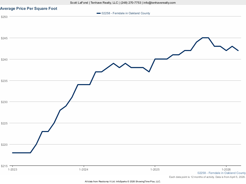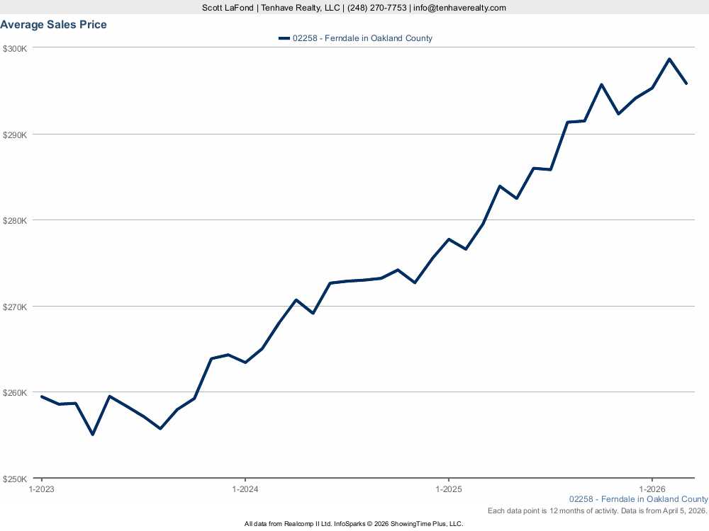 Explore the five interactive charts below to dive deeper into specific metrics that matter most to your situation. Each one breaks down a different aspect of the Ferndale real estate market, giving you the clarity you need to make informed decisions with confidence. Have questions about what these statistics mean for your specific property or situation? Contact Scott LaFond at Tenhave Realty at (248) 270-7753 or info@tenhaverealty.com for a personalized consultation today.